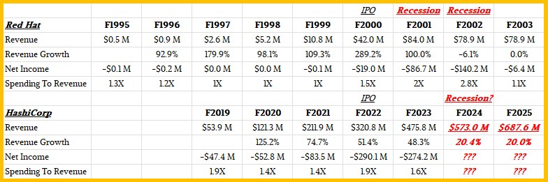 Which brings us to the final point we want to make. How is HashiCorp stacking up to Red Hat in a historical sense? Let’s take a look: