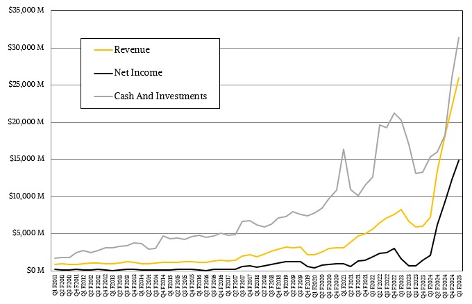 But, as we have said before, we think that we are experiencing peak Nvidia right now, and maybe the party will continue out into fiscal 2026. But eventually, competition will come and the generative AI hype and hope will settle down and AMD, Intel, the Arm collective, and others will get their share of this market. Until then, this is Nvidia’s time to make hay while the grass is tall and the sun is bright,
