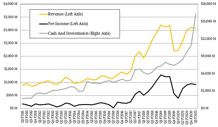 That net income was 30 percent of revenues, which is the level that the company has been able to hold it at consistently for four quarters. Quite a feat.