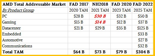 At any given time, AMD’s TAM figures are for the markets it participates in three years into the future.