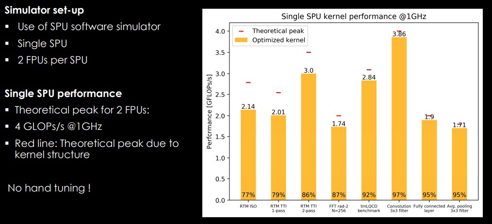 None of this was done on final hardware; instead, a software simulator was used to run tests of the SPU on a range of workloads, from RTM and fast-fourier transform (FFT) to convolutional neural networks and average pooling.